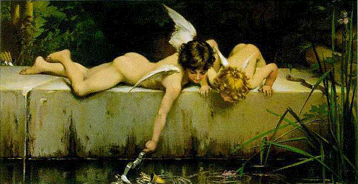 - W. Bouguereau had many eager pupils. Emile Munier was one. ''Le Sauvetage'' (''The Rescue'') sent to the 1894 Salon could almost be a Bouguereau. Two putti are painted like children with bird wings sticking out of their shoulderblades. One of them dips his bow in the water to recover his quiver. Their mealy-mouthed expressions border on parody. Munier was not incompetent, but, with nothing to say, he said what others wanted to hear. ''Le Sauvetage'' made $225,000